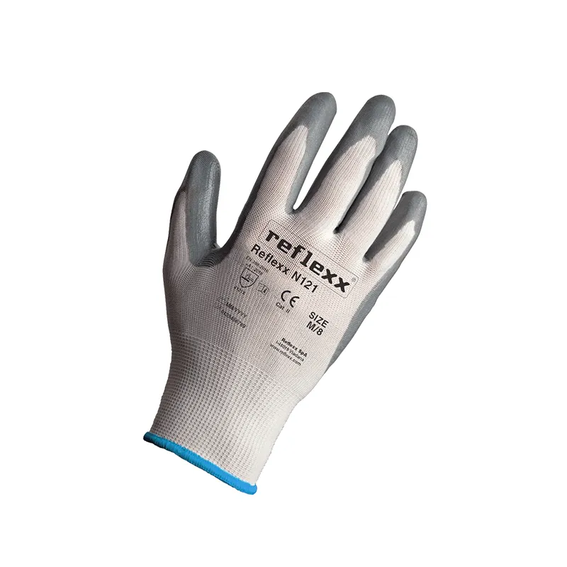 Bešavne pletene sintetičke rukavice, presvučene nitrilom. Elastičan zglob, otvorena poleđina.